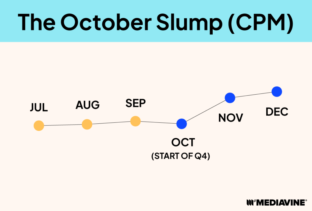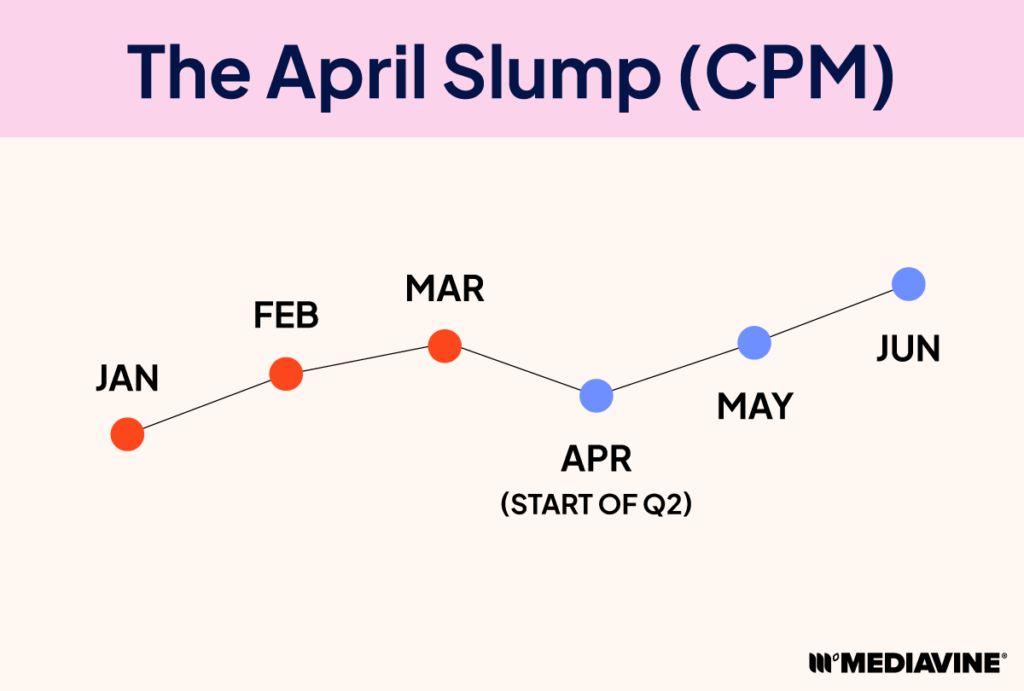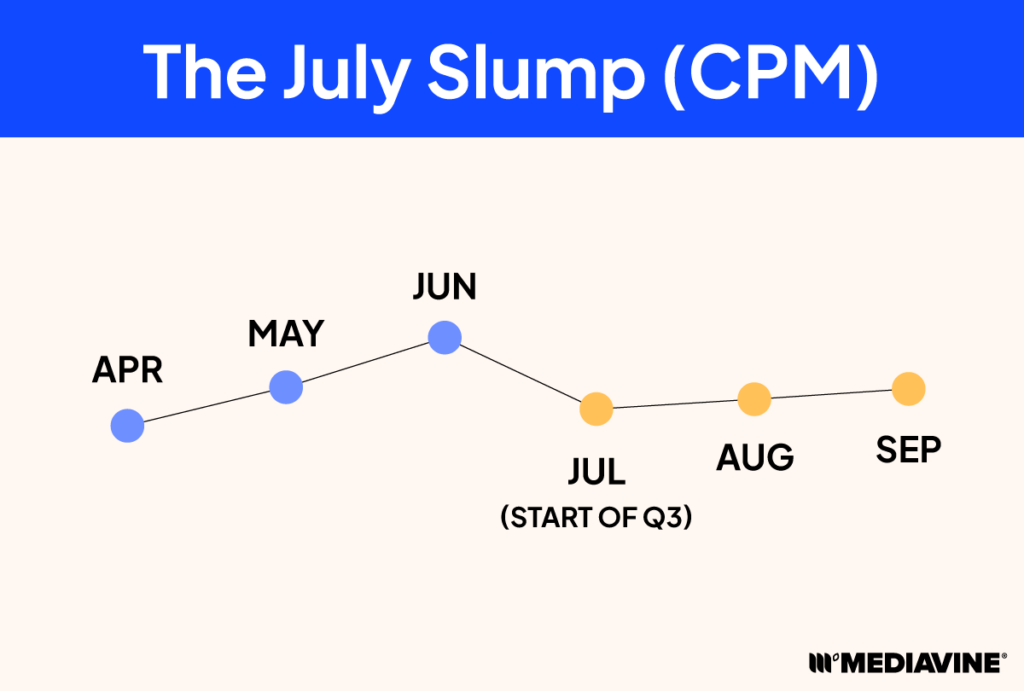 During slower months, we see the CPM drop off as there is less competition in the marketplace– advertisers won’t have to spend as much to get the space they want on your site.