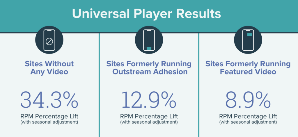 If you aren’t currently running video or our Outstream Video Adhesion, your RPM should increase by an average of 34% through the Universal Player.