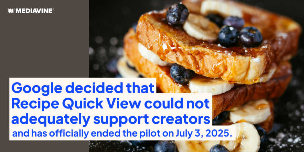 During the Recipe Quick View beta, Mediavine engaged in extensive discussions with Google and raised these issues. While Google continued testing the program, the company was made aware of creators’ questions and concerns and wrestled with them internally.
